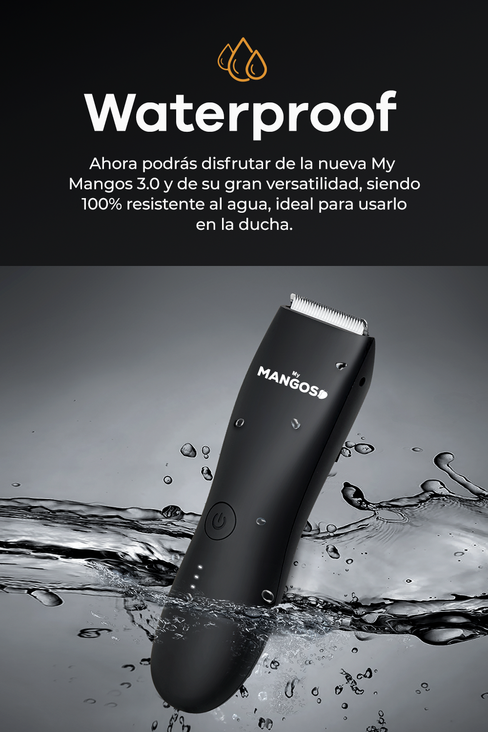 Si, nuestra rasuradora íntima masculina My Mangos es a prueba de agua y puede ser usada en la ducha o en la bañera sin preocupaciones.